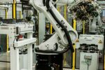 25 Kuka-Roboter bestücken bei Possehl Electronics drei Spritzgussmaschinen mit Stanzgittern zur Herstellung von Steuergehäusen für die Automobilindustrie.